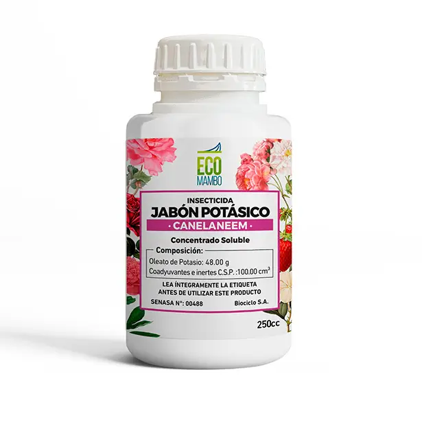 ECOmambo Jabón Potásico Canela y Neem x 250 cc es un producto de origen natural formulado para el control efectivo y ecológico de plagas en plantas de jardín, huerta y macetas. Combina la acción limpiadora e insecticida del jabón potásico con las propiedades repelentes y protectoras del neem y la canela, logrando un control integral y sustentable.